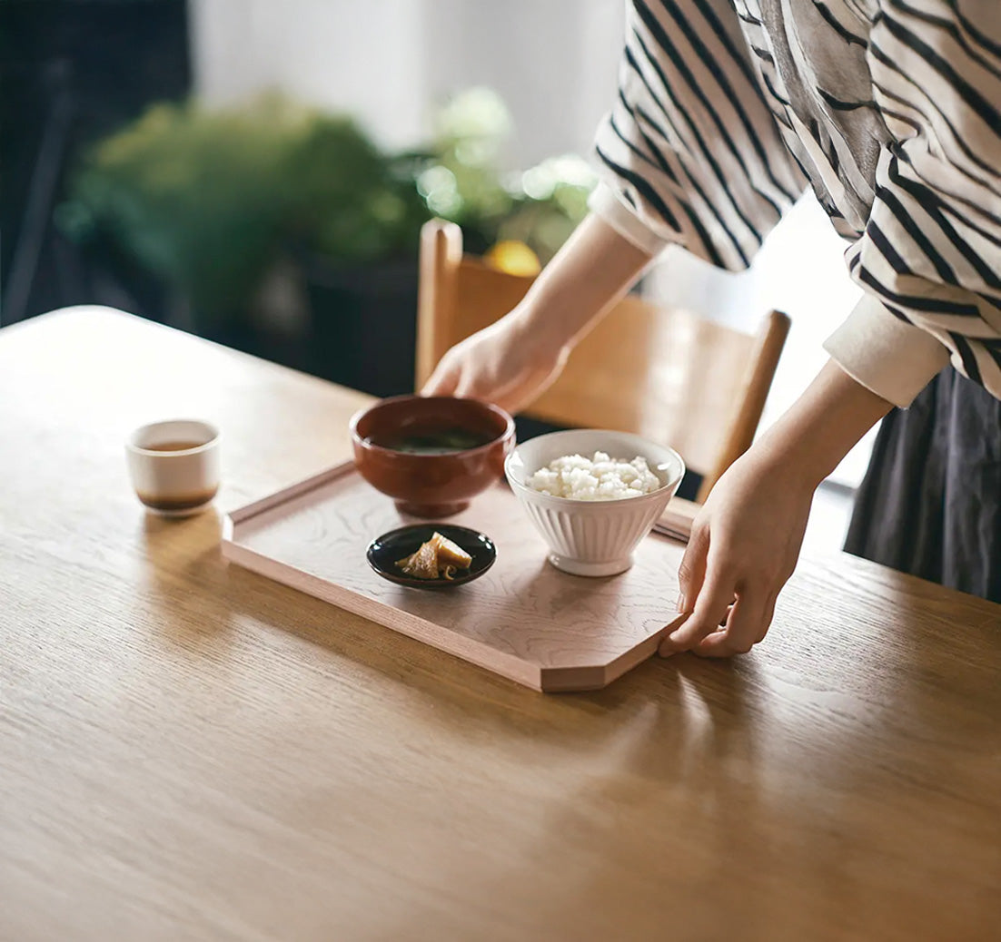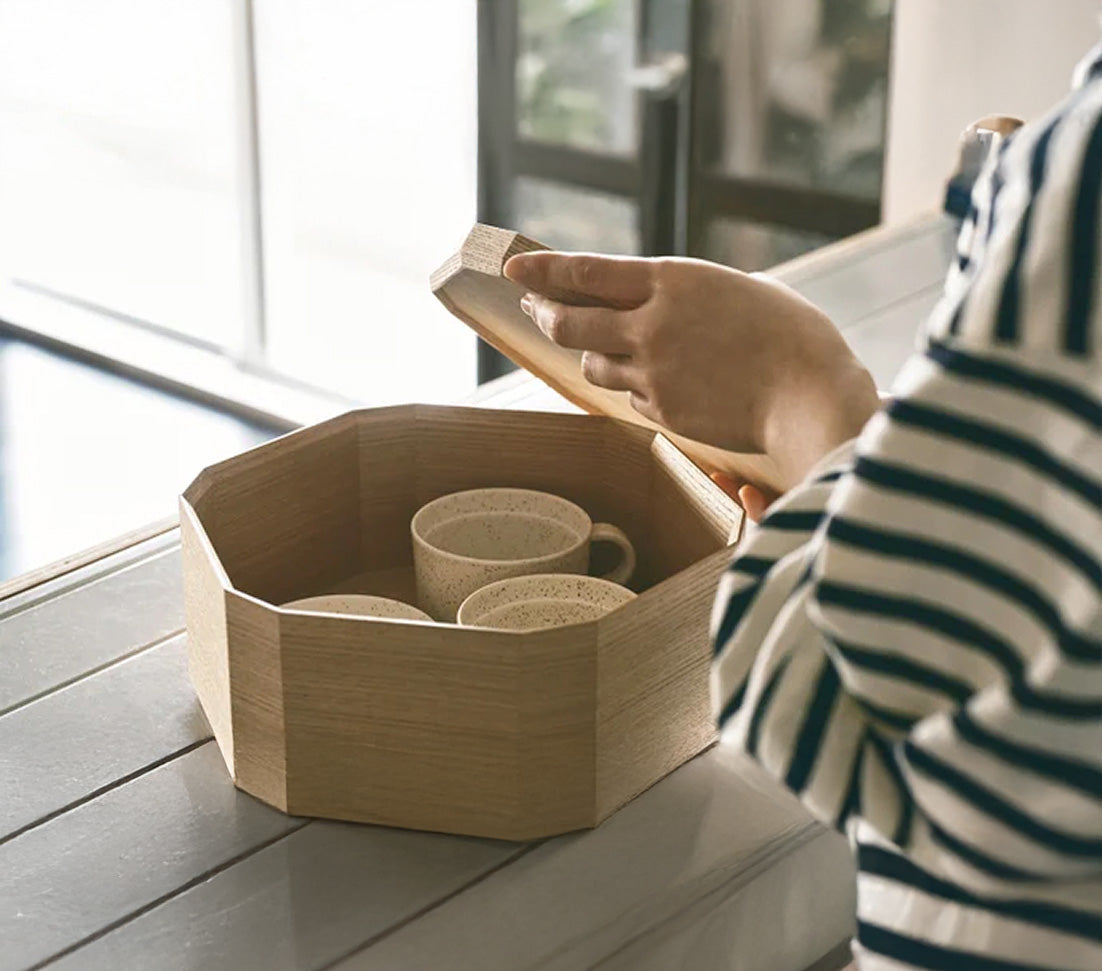 培われた職人たちの技術や文化が、これからもずっと、もっと暮らしのそばにあり続けますように。そんな思いを込めて、今の暮らしにも取り入れやすい、ほっと落ち着く木目と、やわらかな彩りをおもいおもいに積み重ねて使う新たプロダクトをつくりました。「 TSUM 」を使っていただける皆さんと一緒に、越前漆器をみらいへつむぐ プロダクトです。